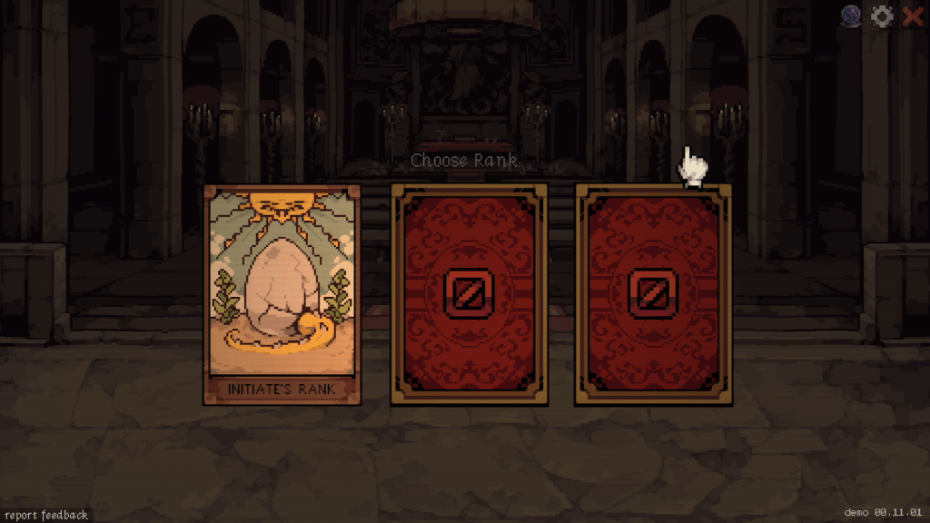 There are multiple game modes on offer in Order Automatica, too. I spent the bulk of my time in the demo with the Initiate’s Rank – illustrated by a gorgeous tarot card design – but based on the menus and Steam page notes, there should be plenty more modes and playstyles available in the full release.