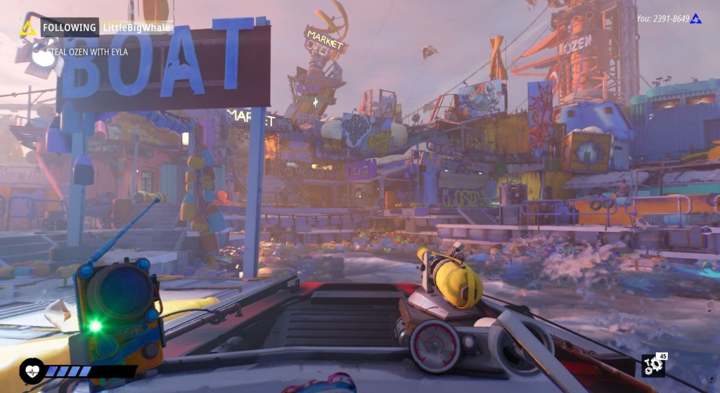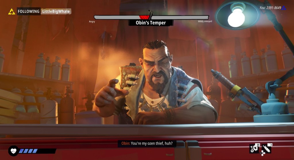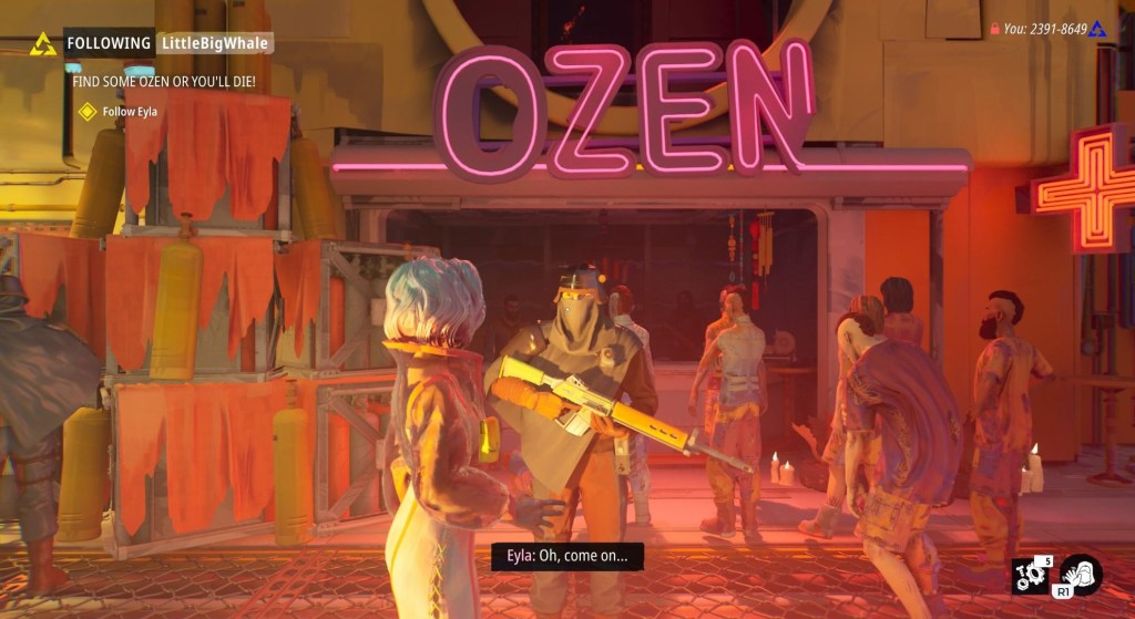 There’s an element of survival to Tides of Tomorrow, too. It’s not quite the same level of intensity as a typical survival game like ICARUS, for example, but you’ll need to stay on top of your Ozen levels to survive, while also gathering Scrap as a key resource for bartering.